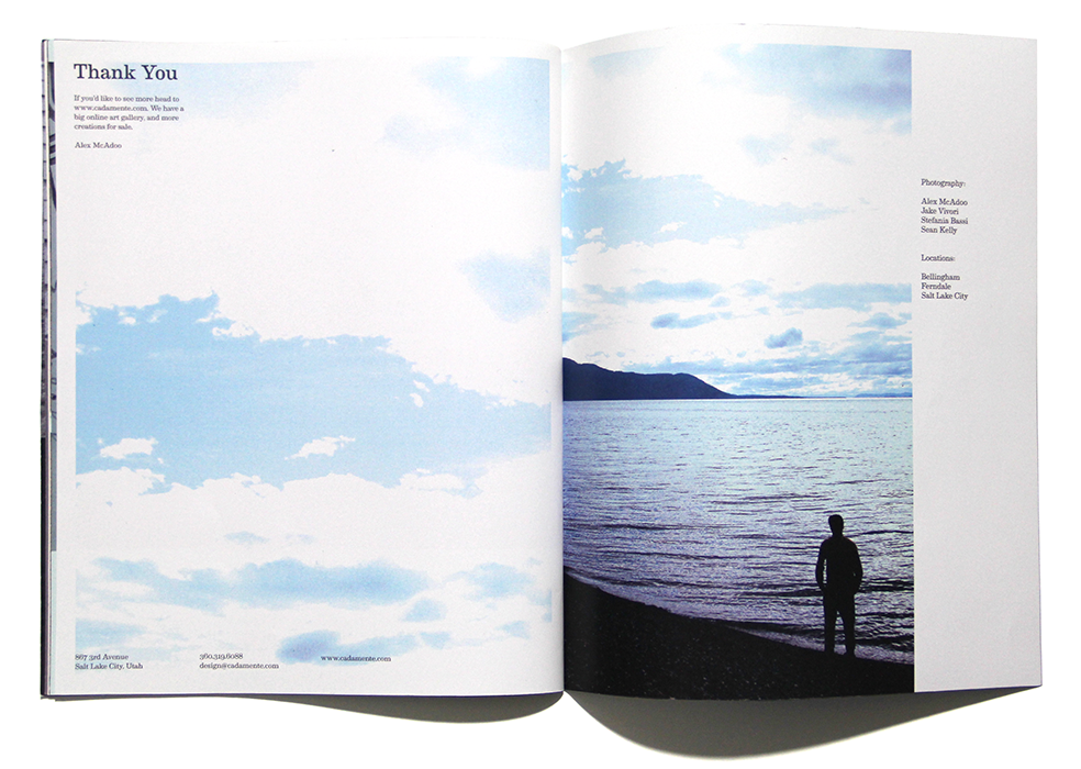 Cadamente was a clothing + print company I was developing back in 2011. These are select pages from a draft for a potential catalog I finished in December 2011.